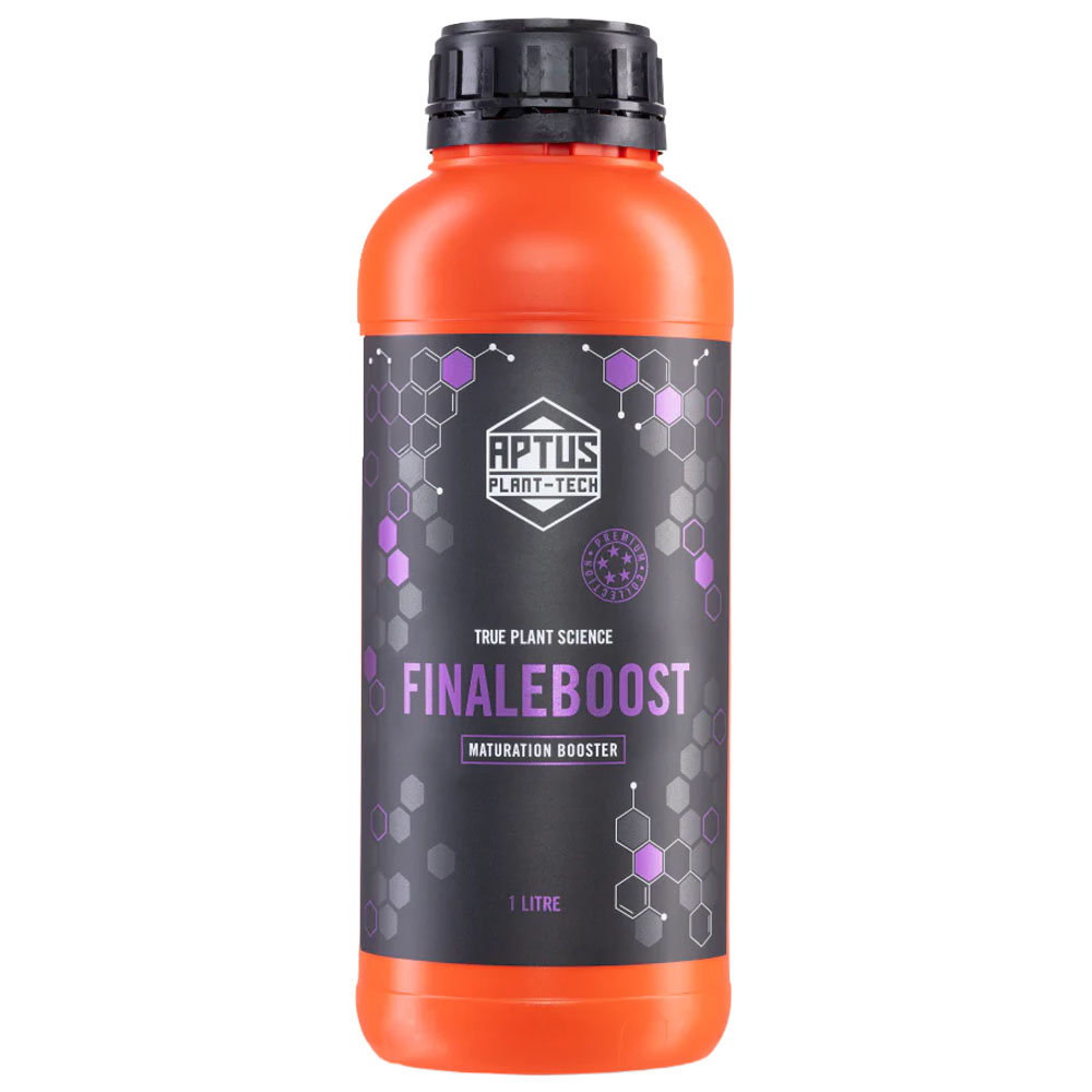 Aptus FinaleBoost 1L Finaleboost along with its sibling product Peakboost make up the Aptus flower development and bulking solution. Perhaps the most noticeable implementation of the Third Pillar of Aptus Philosophy: Mineral Antagonism. Finaleboost moves the vast majority of potassium used during the bloom cycle solely into one product. With this formulation, Aptus has allowed for absolute control of heightened potassium application throughout the specific phases of a plant’s growth cycle. On top of allowing for specific potassium application in consideration of your plant genetics, stage in the growth cycle, or desired flower set behavior, the potassium in Aptus Finaleboost is chelated into an organo-mineral product.