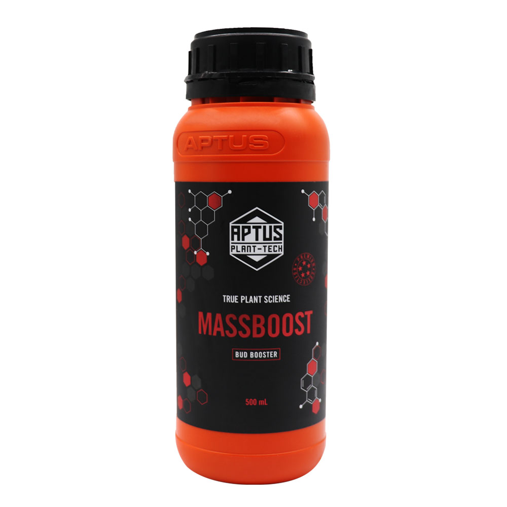 Aptus MassBoost 500ml MassBoost is an organo-mineral plant booster that prevents Calcium (Ca) and Magnesium (Mg) deficiencies while stimulating powerful fruit set and development. Calcium and magnesium are easily locked up or combined with other minerals in the growing medium forming what we call “junk salts”. This active behavior can be a problem when trying to dial in supplementation of calcium and magnesium for your plants. Whereas most other calcium and magnesium products are classic mineral salt formulations, Massboost functions as a pure source for the plants’ optimum and continued health. Since there is next to no interaction with outside products, you can use Massboost for just 3 weeks in the bloom phase: weeks 3, 5, 7, and an optional fourth week in week 8.