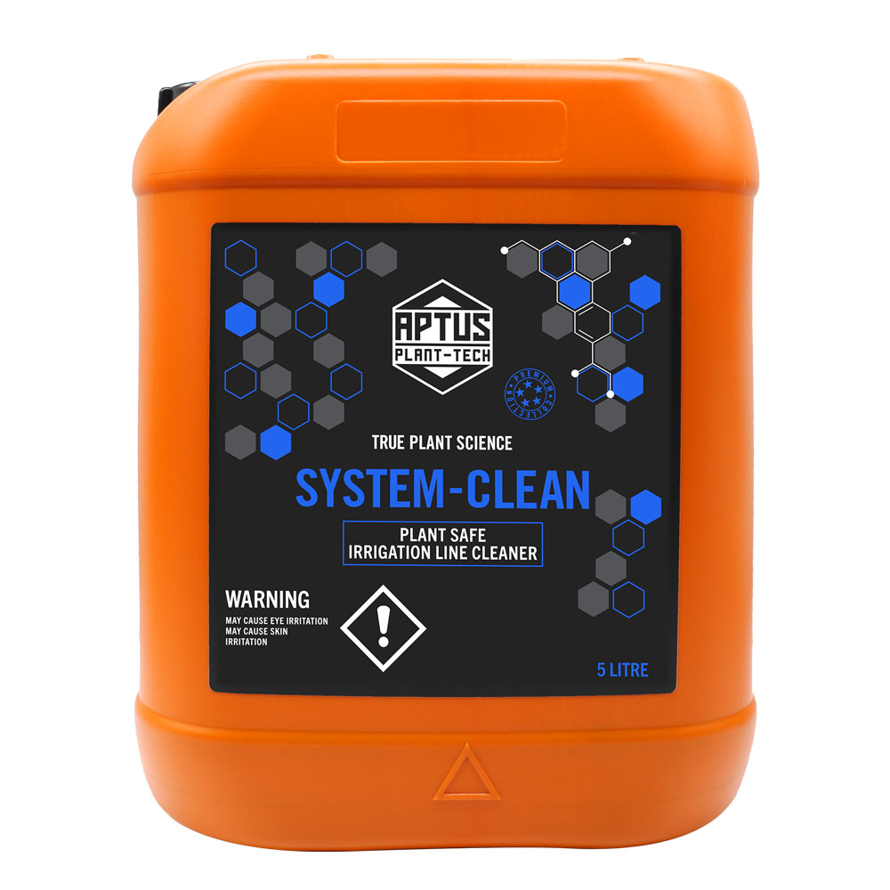 Aptus System-Clean is a stabilized formula of H2O2 that cleans irrigation lines, sprayers, feed rings and drippers, while helping to maintain substrate health and providing beneficial levels of dissolved oxygen. System-Clean can be added directly to your nutrient mix with no negative affects on microbial life (when used at 0.25ml per 1L).