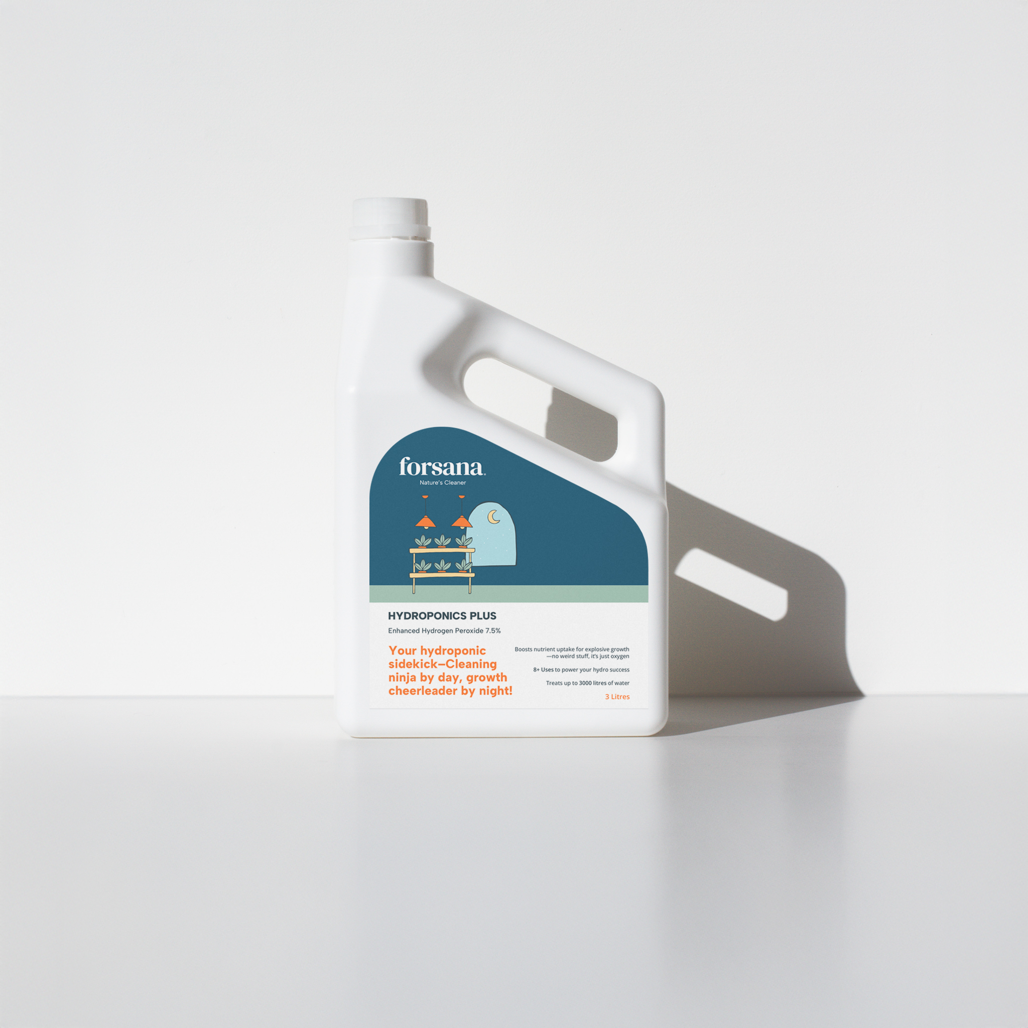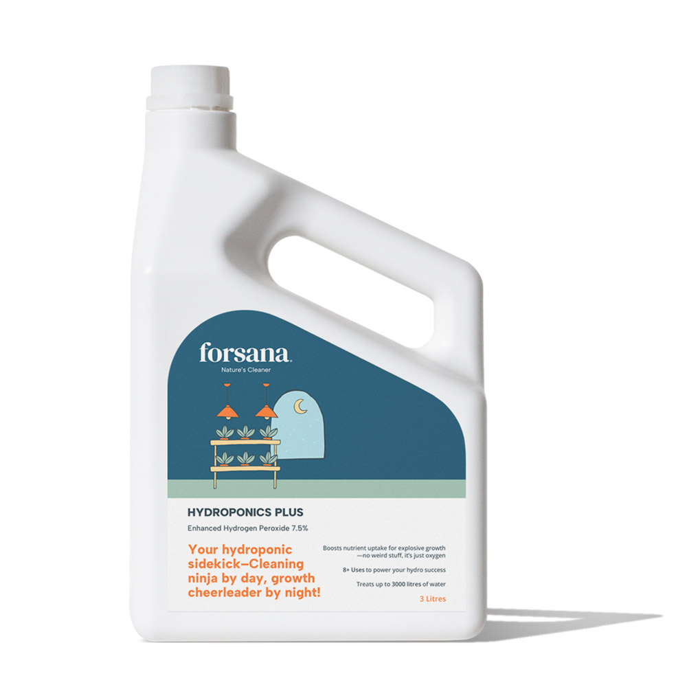 Forsana Hydroponics Plus 3L offers the same advanced silver-stabilised hydrogen peroxide formula in a larger, cost-effective volume—ideal for serious growers or multi-system setups. With a 7.5% concentration, it delivers effective, ongoing control of root pathogens, algae, and biofilm while boosting dissolved oxygen levels to support vigorous root development and improved nutrient uptake.