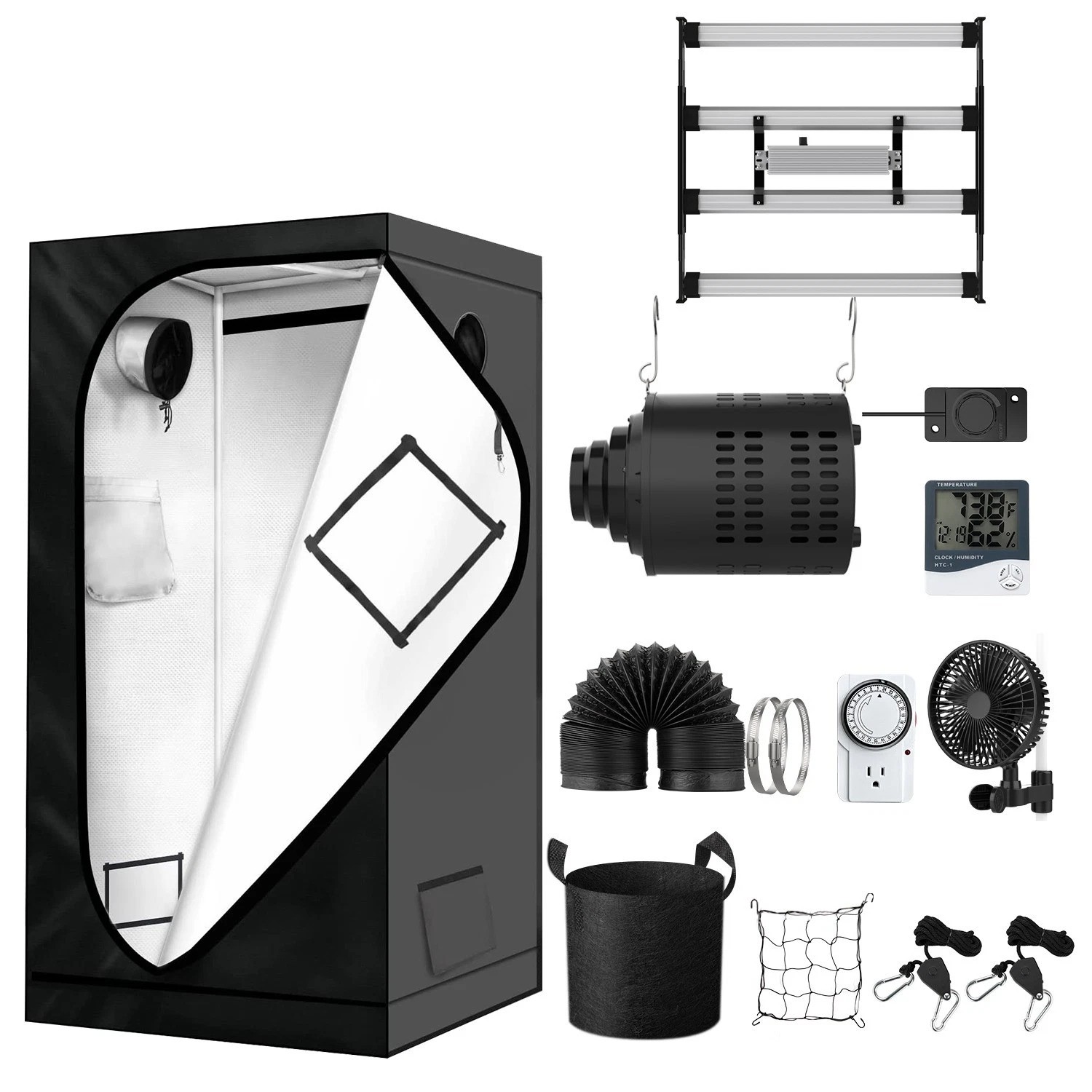 The L.T.C 90×90×180 Complete Grow Tent Kit is a fully matched indoor grow solution designed for efficient airflow, strong lighting, quiet operation, and reliable environmental control. Ideal for beginners and experienced growers alike, this kit includes everything needed to get up and running straight out of the box, with the option to upgrade to smart automation later.