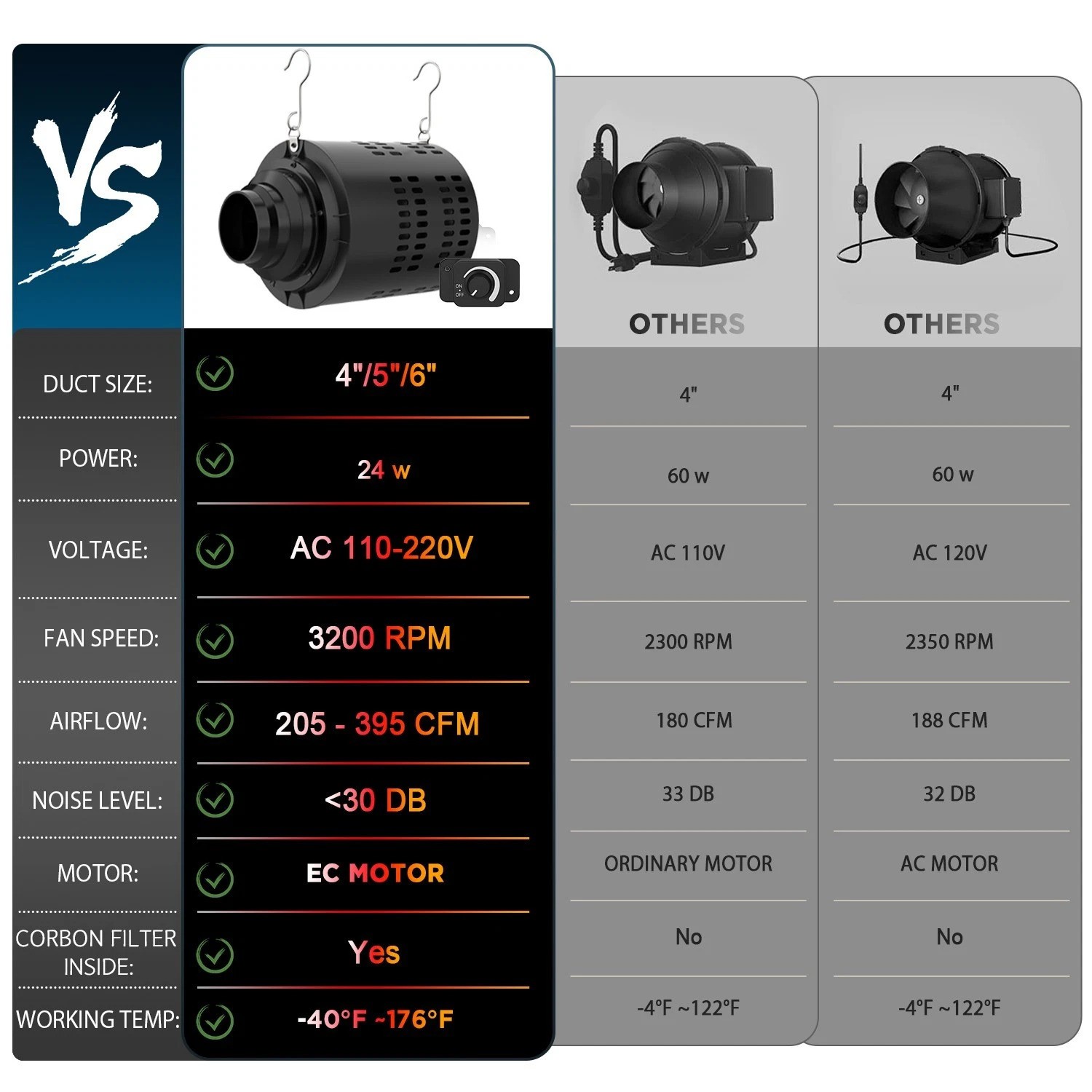 EC Duct Fan & Inbuilt Carbon Filter – Quiet, Powerful & Efficient