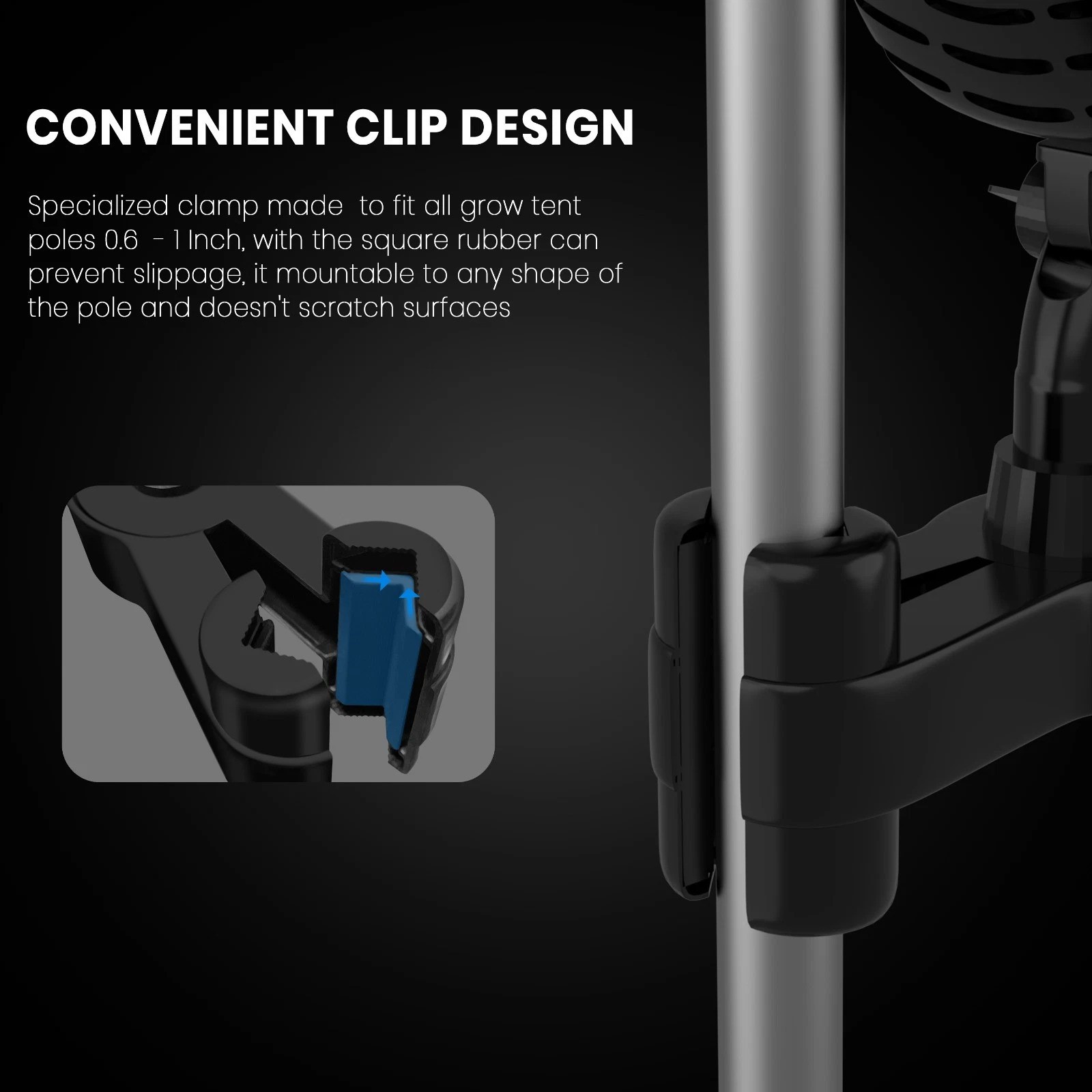 Strong adjustable grip clip (fits 16–25mm tent poles)