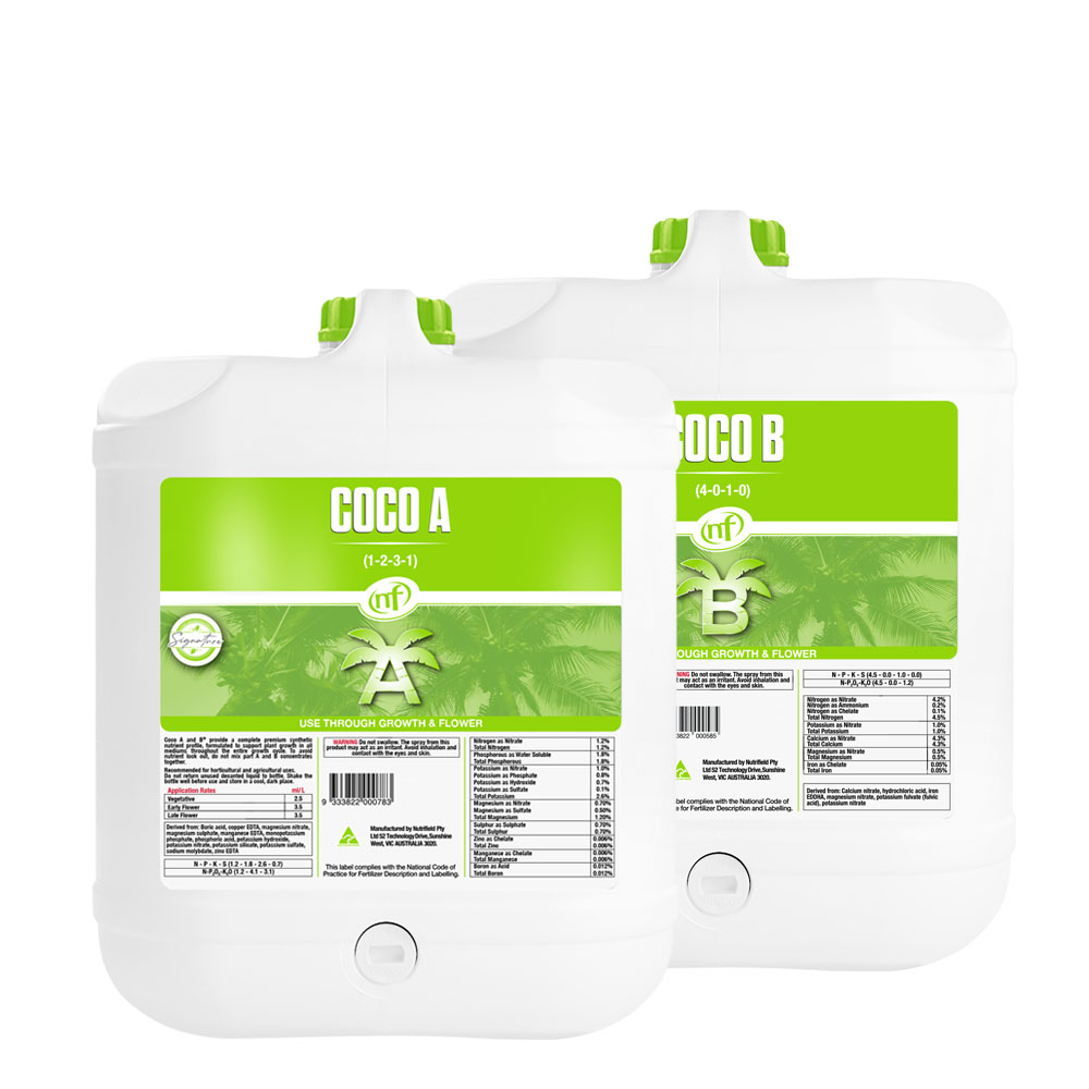 Coco A&B is Nutrifield's complete two-part base nutrient system, formulated specifically for coco coir and fully compatible with hydroponic cultivation. This is the nutritional foundation your crop is built on, and it's designed to perform from the first week of veg to the final days of flowering.
