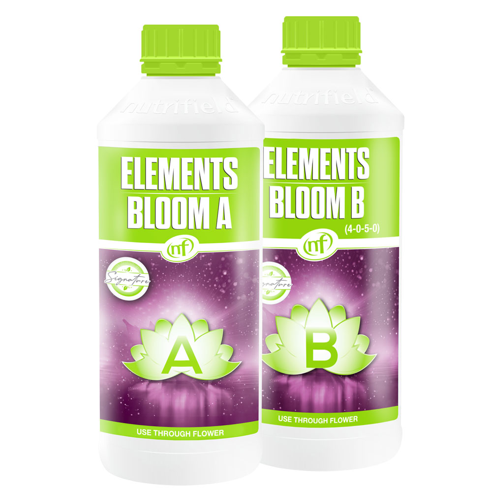 Elements Bloom A&B is part of the Nutrifield Elements 4-Part system, delivering complete, balanced base nutrition throughout the flowering phase of plant development.