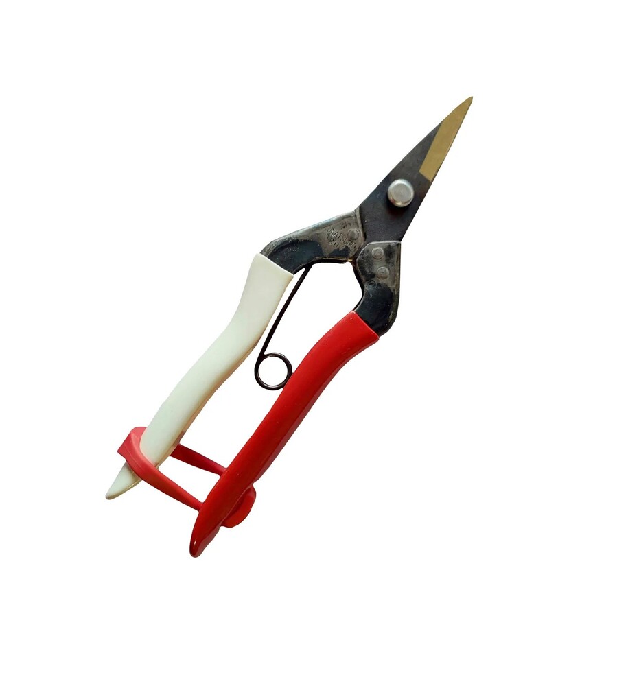 The blade has been ground in two angles, so it will also smoothly cut through wood, and will not unnecessarily damage the plant. Due to the unique shape of the hollow ground blade the sap flows away from the blade, and the blades will not come apart. The V-shape of the spring ensures that the cutting load is distributed evenly over the length of the spring making for a soft closing action. The Okatsune 307 is not suitable to cut branches.